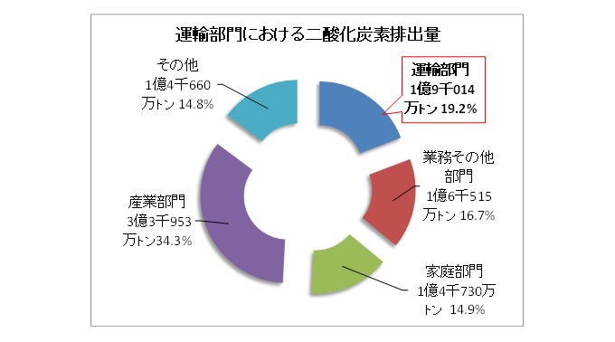 ■運輸部門におけるCO2排出量(全国)は、全排出量の19.2%を占めています。