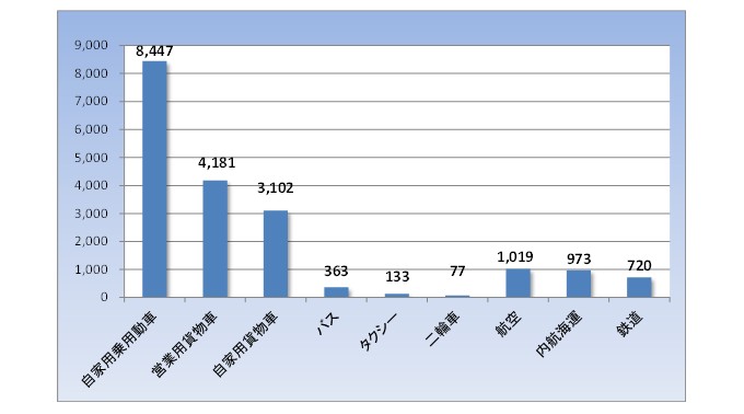 (出典:運輸部門における二酸化炭素排出量の推移(国土交通省ホームページ)より、当団体がグラフを作成)