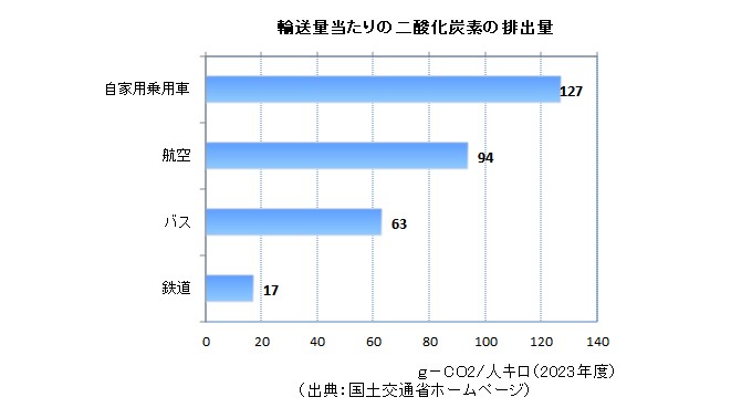 鉄道は、CO2排出量がダントツに低い乗り物です!