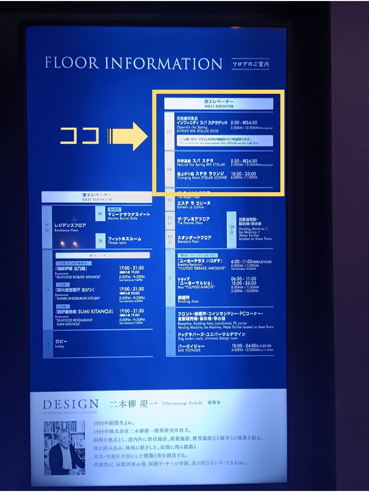 どちらかというと素朴な(ひなびた?)温泉が好きな筆者ですが、「駅近の湯」である以上、高級な温泉も外すことはできません。(不似合いなのですけど…)函館駅から朝市を通り抜けて函館山方向に向かって歩くこと約5分。その温泉は、函館センチュリーマリーナホテルの14~15Fにあります。こういう高級ホテルはあまり慣れていないで、ちょっと緊張しますねぇ。(汗)
