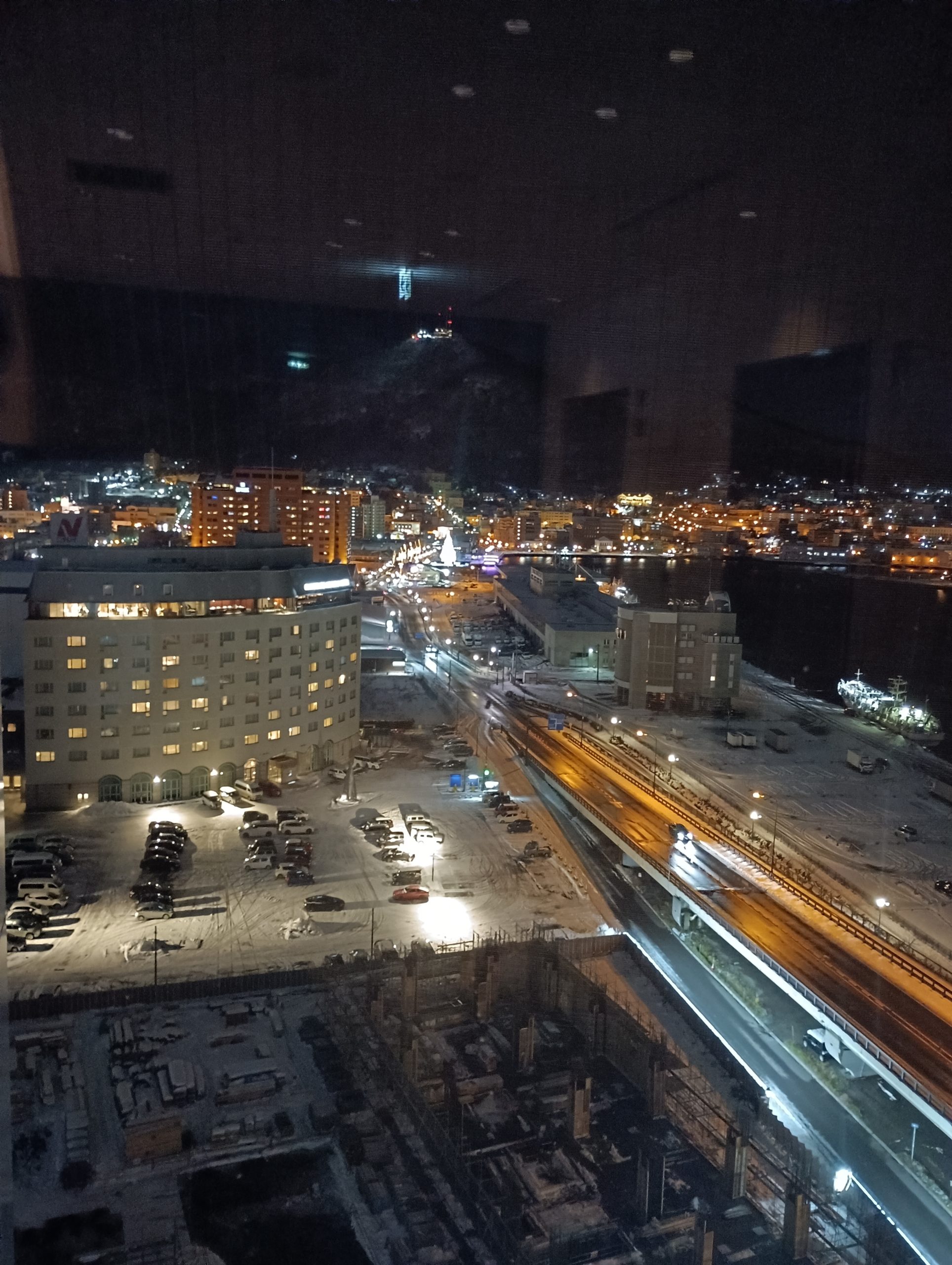 浴室に入ると、湯船にある大きな窓が目を引きます。窓越しには、ちょうど開催中の冬の大イベント「クリスマスファンタジー」が行われている金森倉庫群などが少し遠くに見えます。(昼間ですと、函館山と空のコントラストがくっきり見えたりするのでしょうね~)
